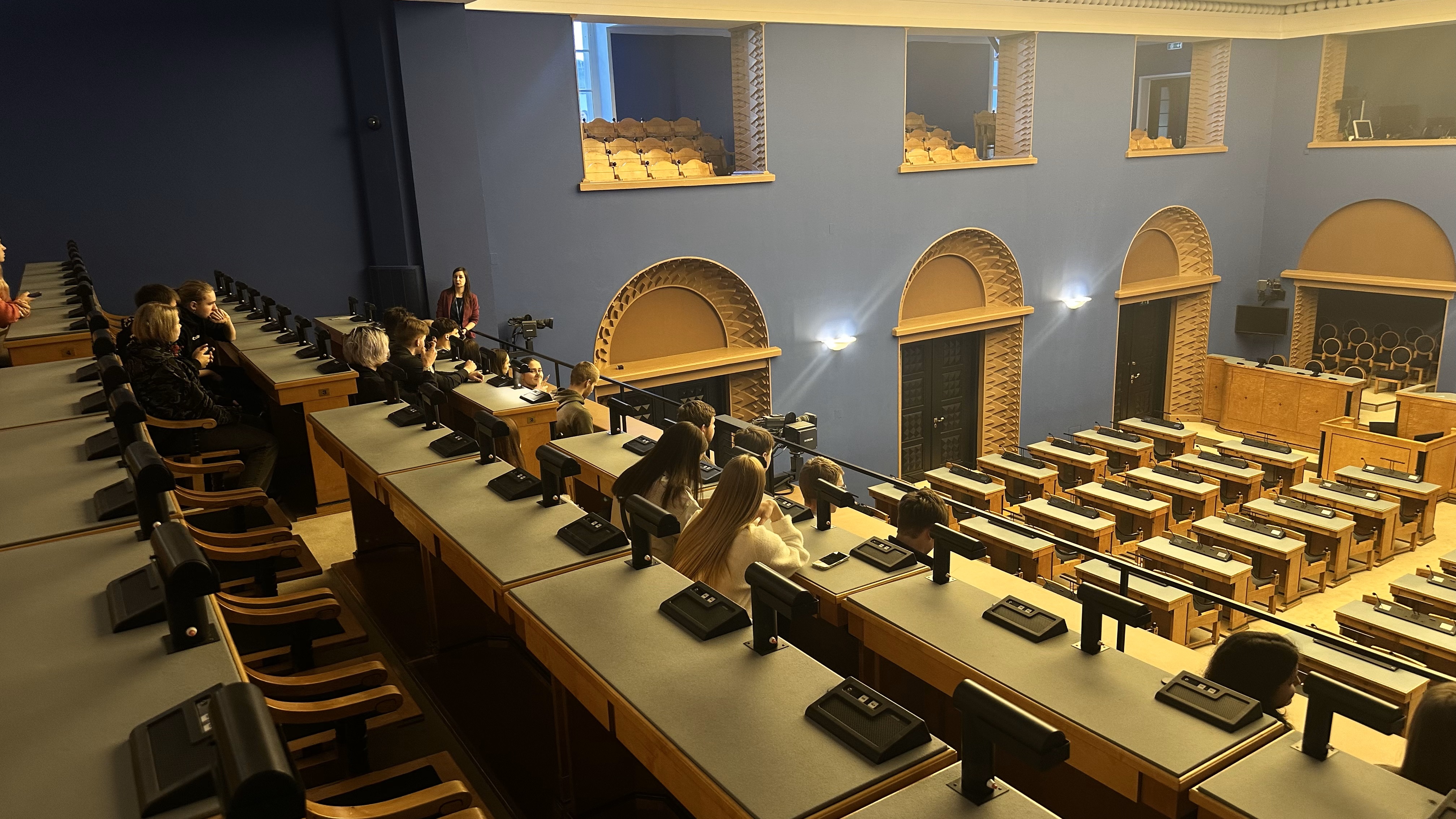 Õpilased külastasid Riigikogu, kus giid tutvustas neile parlamendi ajalugu ning igapäevast töökorda. Samuti toimus kohtumine Riigikogu liikme Arvo Alleriga, kes esindab Eesti Konservatiivse Rahvaerakonna fraktsiooni. Kohtumise käigus oli õpilastel võimalus esitada saadikule küsimusi ja arutleda erinevatel teemadel.